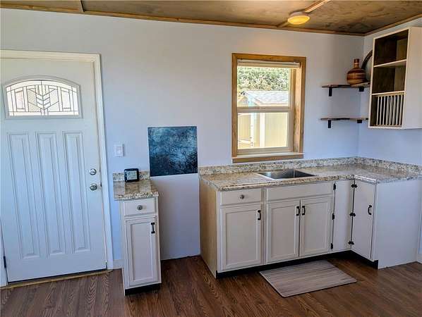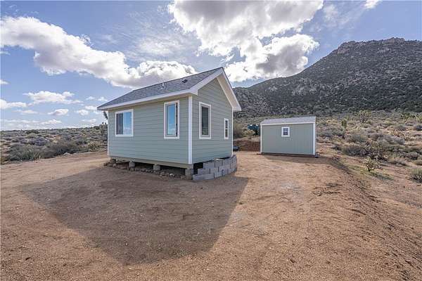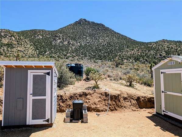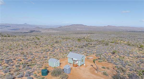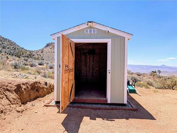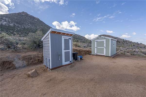 Stunning panoramic views surround this 7.5-acre recreational property with three outbuildings and gated driveway. There is a 240 sq ft finished building with cabinets, a sink, vinyl plank flooring, and several windows to enjoy the views. Also included is an 8 x 12 shed and a 4 x 8 shed for plenty of storage. No utilities to the outbuildings and not permitted for living quarters. There is a 1000-gallon water tank with a 25ft connected hose for water haul or delivery. Property borders government land as well as the Joshua Tree Forest and offers spectacular views of the Grand Wash Cliffs, Iron Mountain, and Meadview to the north. Good access to vast tracts of public land for recreational sports and is close to the route for the Grand Canyon Skywalk which is a short distance away. Six separately parceled 1.25 acre lots are included: APN 318-10-247, 318-10-248, 318-10-249, 318-10-250, 318-20-251, 318-10-252. Owner willing to finance. Come enjoy the scenic tranquility this property has to offer!