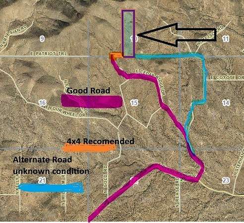 Exit 66 off I40 Blake Ranch Road to Cedar Ridge, stay on Cedar Ridge all the way to the end, you will have to go right or or left go right through the wash, 4x4 recommended at this part for now Photos show this section of road, but its a little deceiving, once through the wash and to the top of the hill the parcel starts right about there on the left, be accompanied by an agent that is familiar with showing land to be safe.