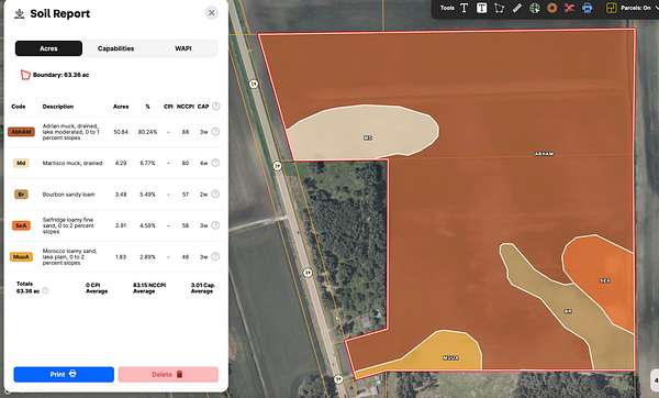 Soil Type: Predominantly Adrian Muck, drained, lake-moderated