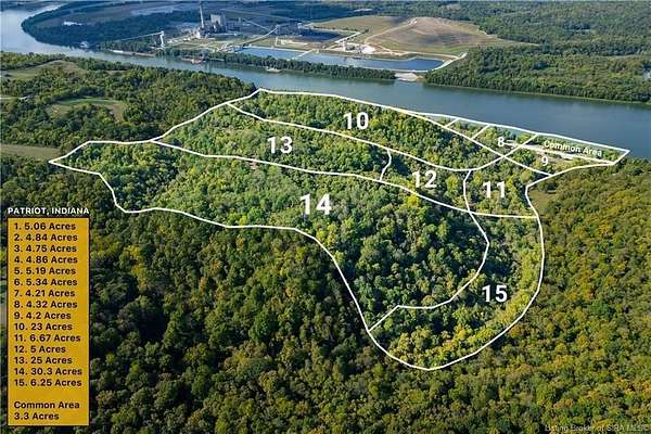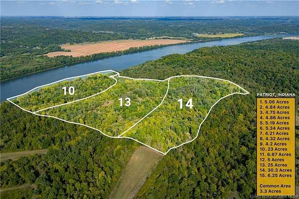 Tract 14 offers a fantastic opportunity to own 30.28 acres directly across from the Ohio River! Nestled right between Patriot and Rising Sun with stunning waterfront views and direct access to the River. Ideal for building a dream home or using as a recreational getaway. Enjoy access to a 3+ acre common area with a private boat ramp, provided to all landowners! Additional Acreage available: Potential Commercial space & larger wooded parcels off the water are also available, with the benefit of retaining access to the shared amenities. Water, electric, and fiber services are available, ensuring convenience. With easy access to Cincinnati, Madison, and Louisville, you'll be close to vibrant city amenities while enjoying the tranquility of riverside living. Whether you're looking for a peaceful retreat, a place to build your future home, or an investment opportunity, Tract 14 delivers exceptional value! Short-term owner financing & potential for trade-seller to provide survey at closing.