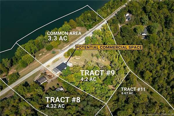 Tract 9 presents 4.042+/- acres of prime commercial property with Ohio River frontageideal for retail, hospitality, or a creative mixed-use venture. Features a unique structure ready for renovation or redevelopment. Located between Patriot and Rising Sun, with easy access to Cincinnati, Madison, and Louisville, combining convenience with stunning river views. Includes access to a 3+ acre common area with a private boat ramp. Adjacent parcels available for expanding into residential or recreational space. With its riverside setting, existing infrastructure, and flexible potential, Tract 9 is a rare investment opportunity. Short-term owner financing and trade options available. Seller-provided survey at closing ensures a smooth transaction.