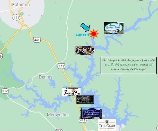 LAKEFRONT, FEE SIMPLE, UNRESTRICTED LOT ON LAKE SINCLAIR - JUST IN TIME FOR PRIME LAKE SEASON! This generous lot of over 1.5+/- acres boasts 124.74+/- FEET of SHORELINE, and is located on the popular "ATLANTA SIDE" of the lake under the LANDMARK CROOKED CREEK BRIDGE. By water, this property is located between Oconee Springs Park (which features summertime water park, beach, live music events, and more, as well as campground/cabin rentals and Event Venue) and The Grill at Crooked Creek Marina (the perfect place to dine for a casual lunch and gas up your watercraft). Less than 2 hours from the hustle and bustle of Atlanta, Lake Sinclair encompasses over 15,000 acres of glistening waters, perfect for daily cruising and recreation, and is truly a hidden gem with laid-back vibes! Enjoy the Lifestyle of the Lake with NO HOA! MANUFACTURED HOMES ARE ALLOWED (Buyer to verify with county). PIN TO PIN SURVEY IS ALREADY COMPLETE AND VERBAL APPROVAL FOR MAX DOCK PLUS DOUBLE BOAT HOUSE (Buyer to verify with Ga Power). Enjoy your own spot on the lake in the low $100k's, just in time for summer! Perfect site for primary residence, second home, or investment rental. Welcome to Georgia's own Lake Country! (owner/agent)