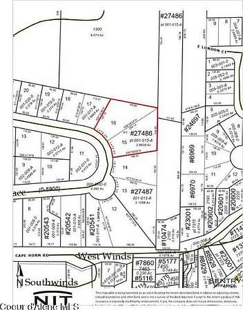 E on Hwy 54 at Athol to Bayview. Go out Cape Horn Rd approx 2 mi to left on Terrace Dr to 1st switch back. Lots are on upper RT side of road just before the new home.
