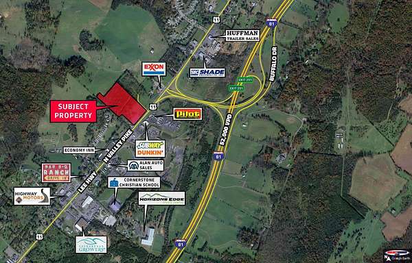Almost 14.5 acres of B-1 zoned land just off interstate 81 at the first Harrisonburg exit. The interstate has counts of over 50,000AADT that will only increase as they widen 81 to 3 lanes. Route 11 sees 15,000 AADT with Horizon's Sports Edge, residences, warehouses and distribution centers all centered around that exit. Owner will consider subdividing either tract to sell back portion by subdividing a pipe stem parcel or sell front portion - Price to be negotiated. Property ideal to feed off business from Pilot Truck Stop, Sheetz and other surrounding businesses. Rockingham county water & sewer available. Ideal for hotel, restaurant, truck wash, truck repair, and many other uses.