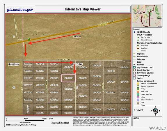 Highway 93 to Cottonwood Cove Rd, turn west toward Cottonwood Cove. Go approximately 8 miles to N Jones Rd and turn left. First left to Cheryl, second right to Vigil Rd (unmarked). Property is the second parcel on the left at sign.