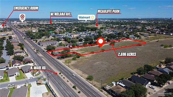 From Hwy 83 take exit towards N Ware Rd. Continue North on Ware Rd passed Pecan Blvd. Property is on right side after Westway Ave.