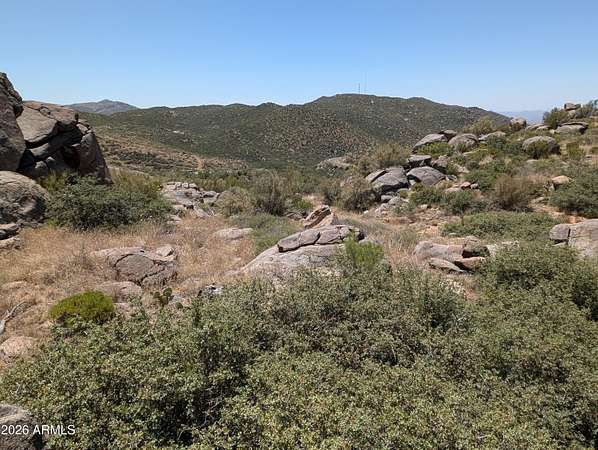 Est $696/moMagnificent boulder strewn acreage with fantastic views. Feels remote and private yet a short stroll to town. Private gated property, close to utilities, it has CC&Rs included in listing docs. Only 30 minutes from Wickenburg or 1.5 hours from the Valley. Cooler summers at 5000 ft elevation with mild winters. A great place to disappear & unwind, but still remain a short drive from Phoenix.