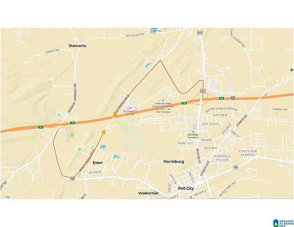 Appointment Only: I-20 to Pell City Exit. Left on Hwy 231N. Turn Left between Wallgreens and Chickfli . Left onto Wolf Creek Road. Crossover Interstate. Easement Access on left beside home located at 720 Wolf Creek Road. Must be accompanied by an Agent.