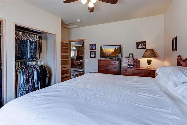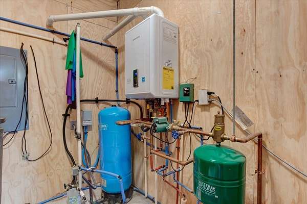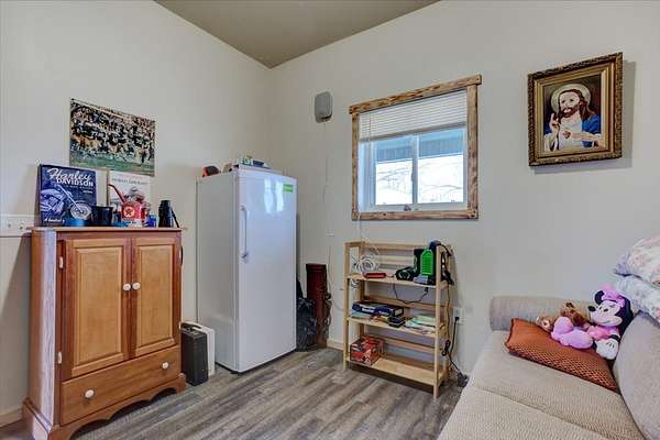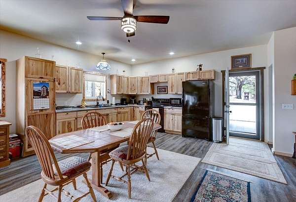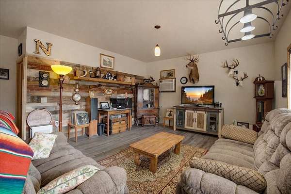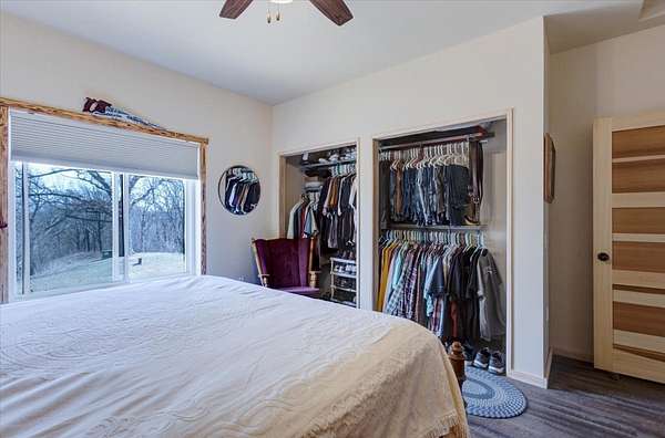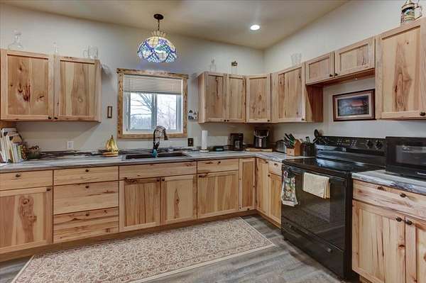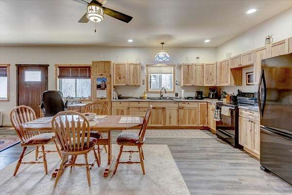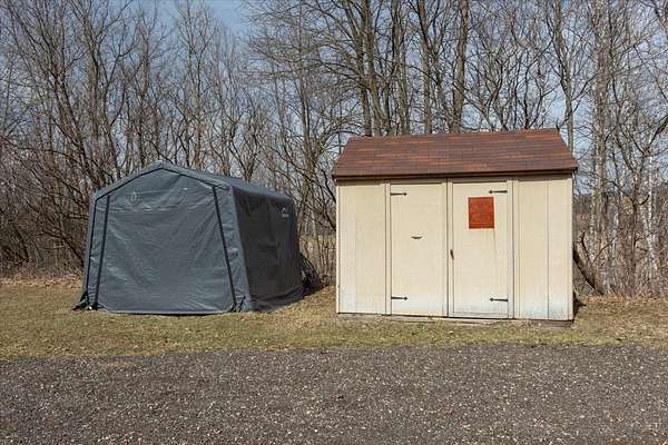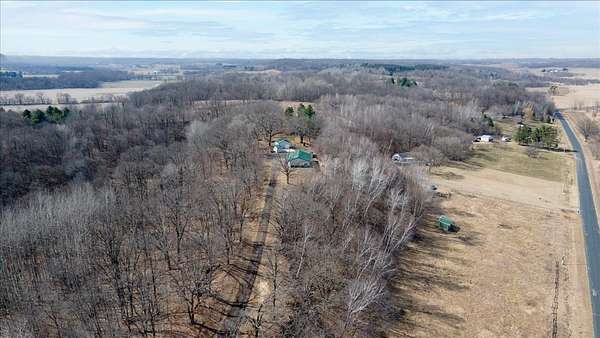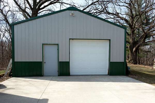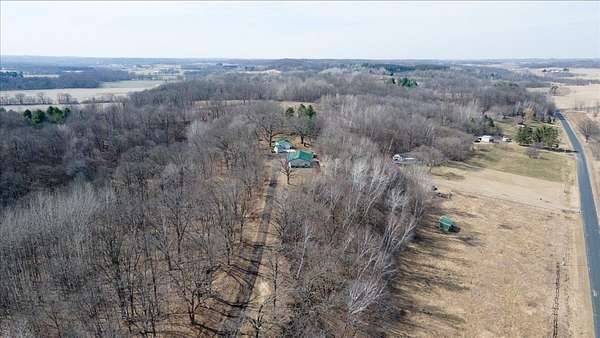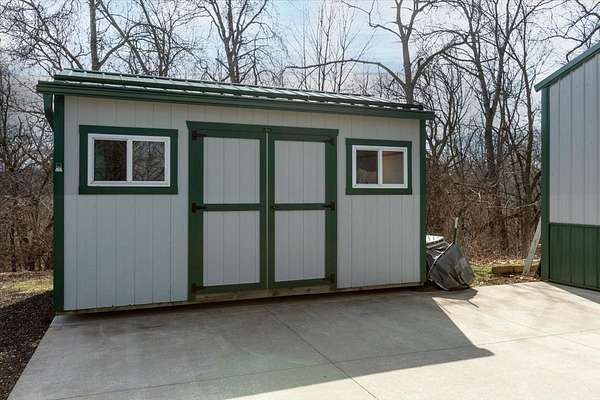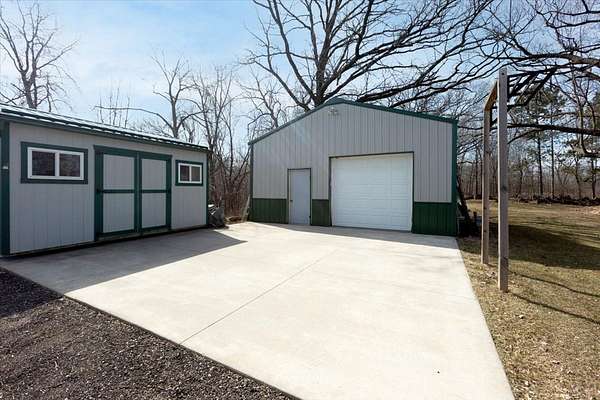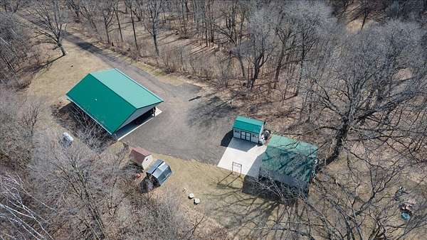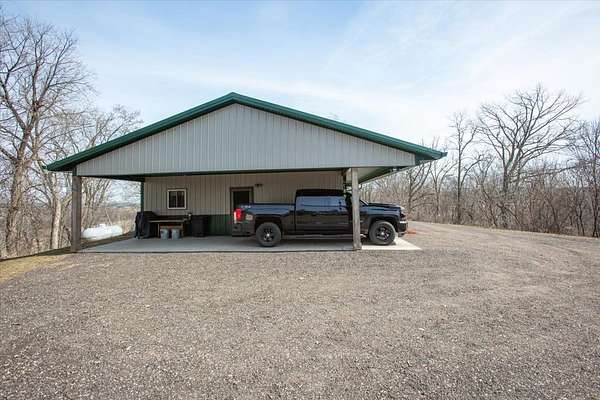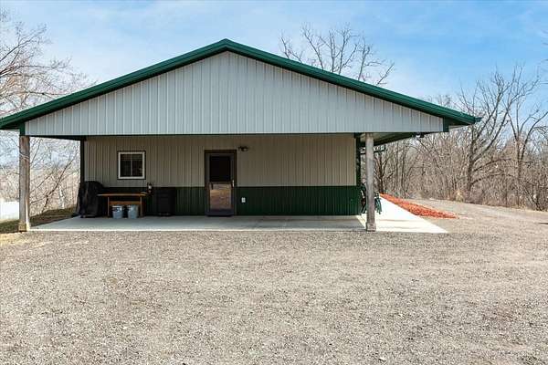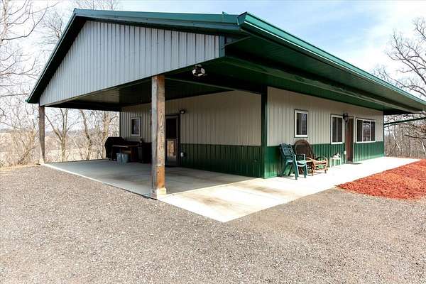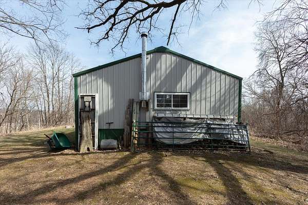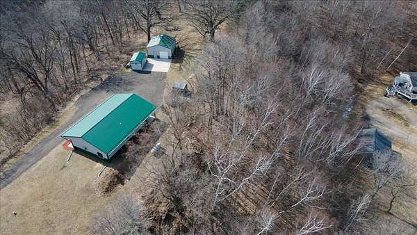 Set on 4.3 private acres with stunning views of the surrounding woods and abundant wildlife, this shouse-style home offers the perfect blend of comfort and seclusion. Enjoy true privacy in this thoughtfully designed, single-level residence featuring 2 bedrooms and 1 bath with a walk-in shower. Built in 2019 by Tim Brion, the home sits on a slab for easy, low-maintenance living. The open-concept layout is enhanced by custom hickory kitchen cabinets, durable LVP flooring, alder 3-panel doors, and energy-efficient 2x6 exterior walls with added insulation. A metal roof adds long-term durability, while in-floor boiler heat and a large wall A/C unit keep the home comfortable year-round. A Reliance backup power switch is already in place for generator use. The living room showcases a beautiful barnwood accent wall with a barn Beam floating mantel, creating a warm and inviting focal point. A side carport offers additional convenience and is already has perimeter footings for easy conversion into extra living space if desired. The property also features a newer well pump. Outside, the park-like setting includes a firepit and relaxing outdoor space, with excellent hunting opportunities right on your own land. Outbuildings include a 26x26 insulated (wood stove will be removed, insulated venting to stay)shed with RV hookups, a Premier-built 10x16 shed, and a 8x8 garden shed. A crumbled asphalt driveway completes this exceptional rural retreat.