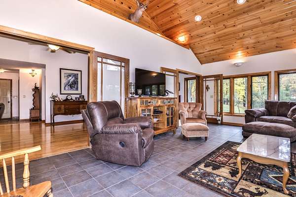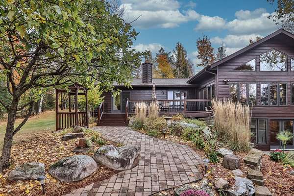 BEAUTIFUL HOME ON A FULL REC. LAKE WITH PRIVACY!!! This meticulously maintained, 3-bdrm, 4-bath home sits on 35.5 acres on Solberg Lake. The home features a main floor master suite, lakeside decks & patio, att.and det. garages, a wood burning fireplace, a large sunroom, beautiful landscaping, newly stained exterior, natural gas, a whole house generator highspeed internet, and much more. (See Unique Features list under Docs tab) The 35.5 acre parcel with 1000' of shoreline guarantees your privacy. The parcel is approx. half lake bed, and half high ground. (see maps). A great swimming area, a stream fed pond, groomed trails, a well manicured lawn, and 2 private islands are all included. Solberg is known for it's exceptional fishing, boating, and kayaking. This property is about 45 min. from Minocqua, and 60 min. from Hayward. Just a short drive from thousands of acres of Chequamegon Nicolet National forest. UTV, and snowmobile right from your front door.