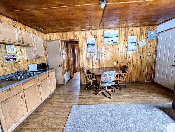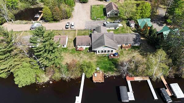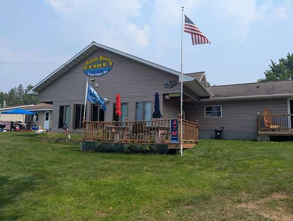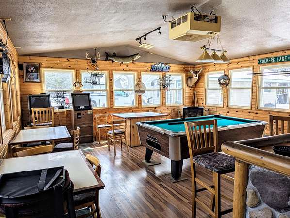 Sunset Haven Resort & Polish Palace Bar offers an unparalleled opportunity to own a stunning resort property or family compound on Solberg Lake, known for its fishing, recreation, beach and park. This location provides direct access to the public boat landing, snowmobile and ATV trails, and adjoins 1,000s of acres of public land. The resort features 5 fully furnished charming 2-bedroom cabins, 1 cozy 1-bedroom cabin, and a spacious living quarters with 2 BR and office/3rd bedroom, and full basement. There is a fish cleaning house, 28x36 garage with upper loft, and an additional storage shed. Each cabin has its own private dock, and the bar has a private dock and lakeside deck with breathtaking views, and unforgettable sunsets. Just minutes from downtown, this property provides both serenity and convenience, making it an ideal location for year-round activities and recreation. Whether you're looking for a family compound, investment property or lakeside living, this is a MUST SEE!