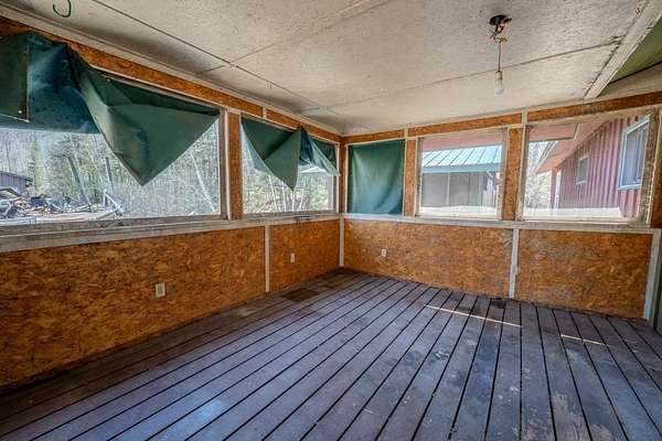 40 acre, Town of Harrison property is located off Highway 17 and County Road D, just West of Pine Lake, near both Tomahawk and Rhinelander. With abundant wildlife, and the beautiful rolling hills and mature hardwood trees that Harrison Hills is so well known for, this is an outdoor person’s dream. Included is a 3 bedroom, 2 bath home with a walk out lower level and steel roof. The home requires updating and remodeling but is likely livable as it is. There is a screen porch entrance and additional buildings that include a screened hot tub room, a small barn and a storage shed. The buildings will require some repairs. Lincoln County land records indicate a newer septic system and there is a drilled well on the property. The electricity has been turned off and the plumbing may have been winterized. The home and land have been cleared of much of the debris and personal property but some of this still remains and it will be the Buyer’s responsibility to remove if they desire. A large pile of scrap metal to the East of the home will be removed prior to closing.