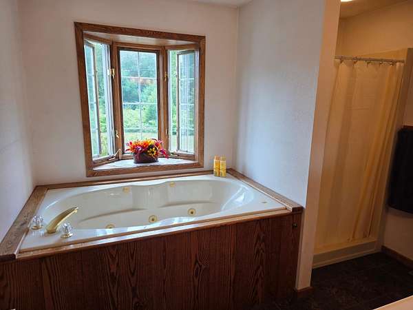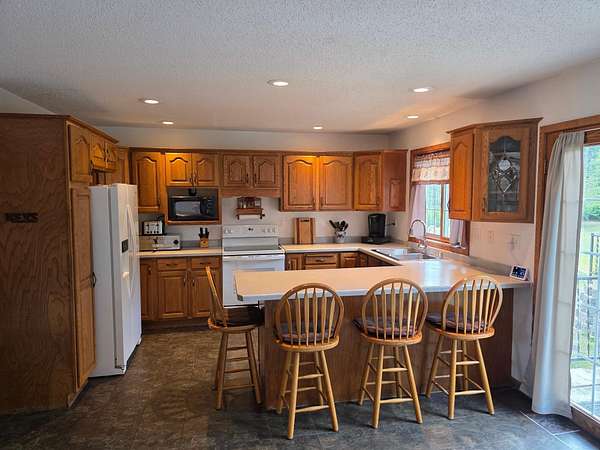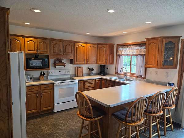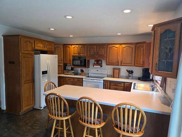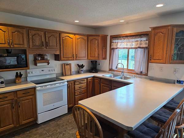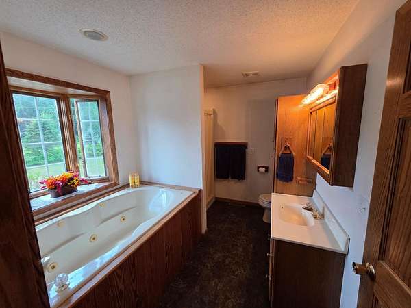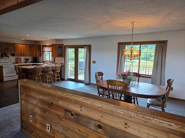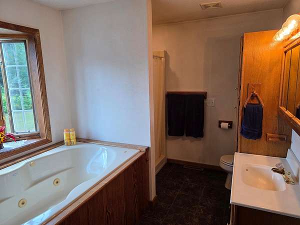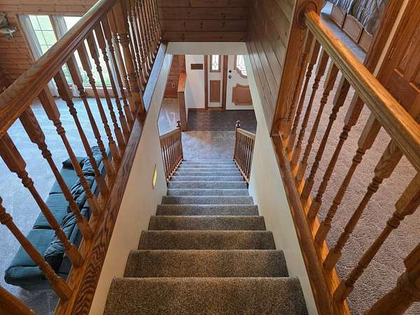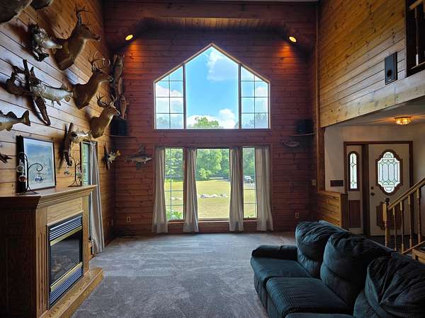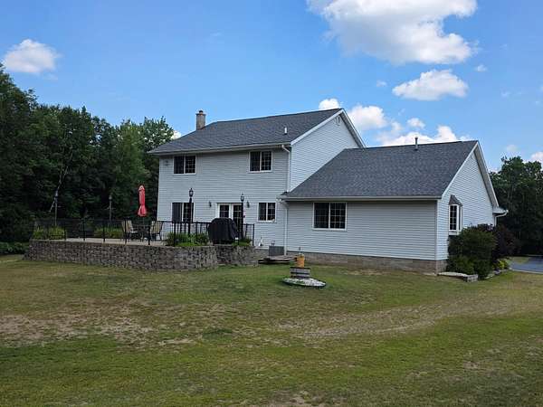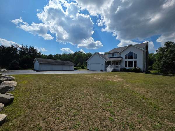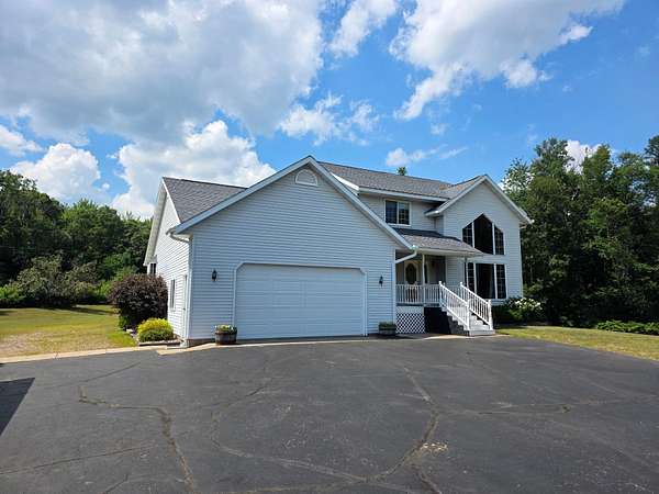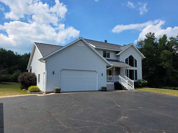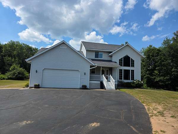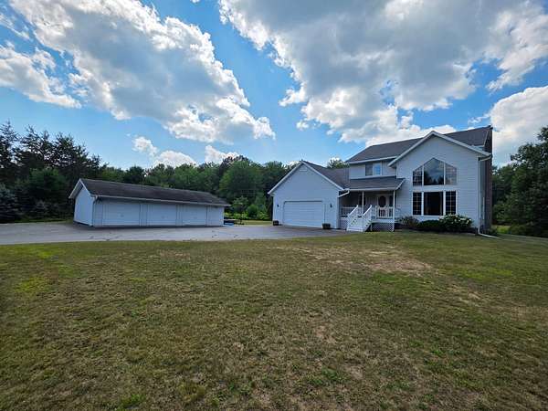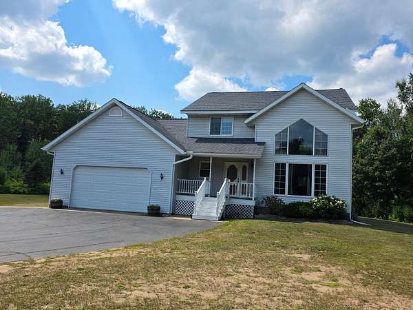 CUSTOM COUNTRY HOME is nestled down a blacktopped driveway that leads you to this idyllic setting for the home and detached garage/workshop. The expansive yard includes perennial plantings, apple trees, and space for gardening. The detached garage is 26x40 with one of the stalls functioning as a finished workshop space. This home has everything you need on the main floor. The floor plan flows easily from the attached 24x24, 2-car garage or the front covered porch entry. The living room has a soaring wood cathedral ceiling with a wall of windows overlooking the front yard. The kitchen is well-appointed and spacious in design, overlooking the rear acreage, and adjoins the dining room area. The primary main floor bedroom offers a private bathroom with a large jetted tub, a separate shower, and a walk-in closet. Upstairs, you will have an enormous loft living space for your office or hobbies, 2 bedrooms, and a full bathroom. The basement is your unfinished space - ready for your ideas.