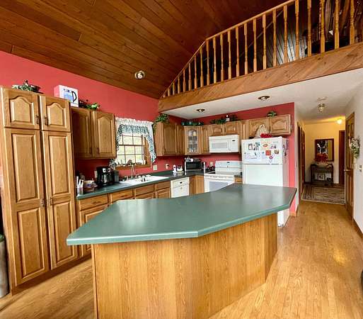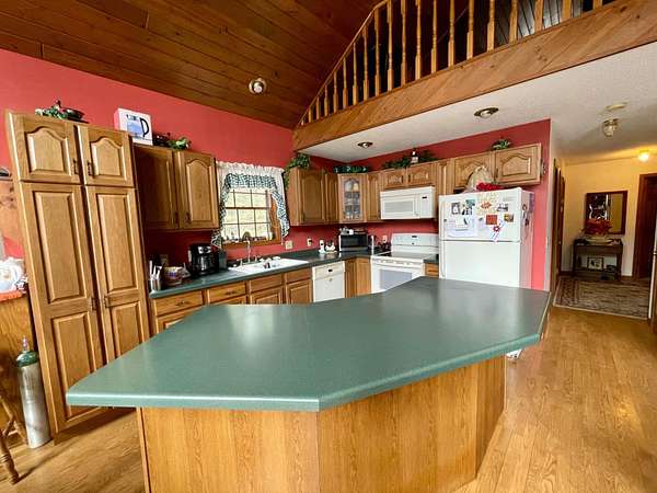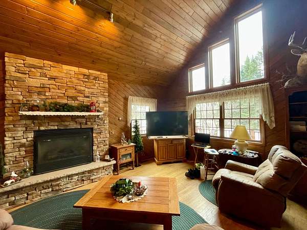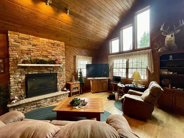 Experience the perfect blend of luxury and country living with this stunning custom-built home set on 6 peaceful acres just minutes from Phillips. This beautifully designed 3-bedroom, 2-bath home welcomes you with an inviting entryway off the garage that flows seamlessly into the main living area. Inside, you will love the cathedral ceilings, expansive windows, and the striking stacked stone fireplace that is the focal point of the main living space. The open-concept kitchen, dining, and living areas offer an ideal setting for both everyday living and entertaining. The spacious primary suite features great closet space and an ensuite complete with a relaxing jet tub. A second bedroom and full bath with laundry round out the main level. Upstairs, a versatile loft overlooks the scenic landscape-perfect for a family room, third bedroom, or home office. Outside, enjoy direct access to the snowmobile trails and thousands of acres of Price County public land. Call today!