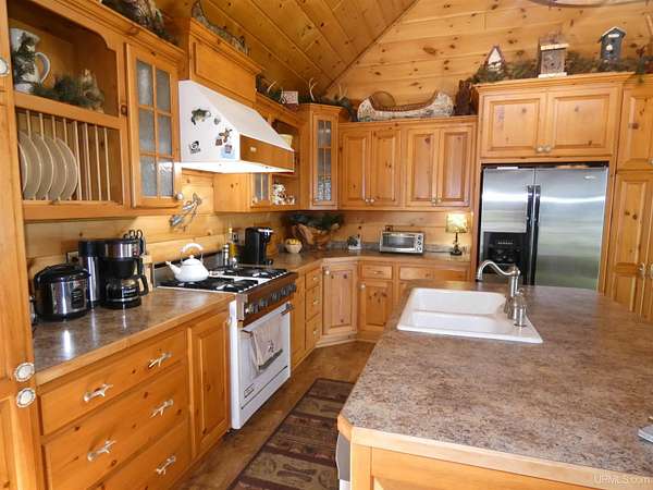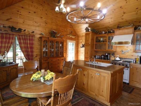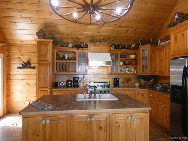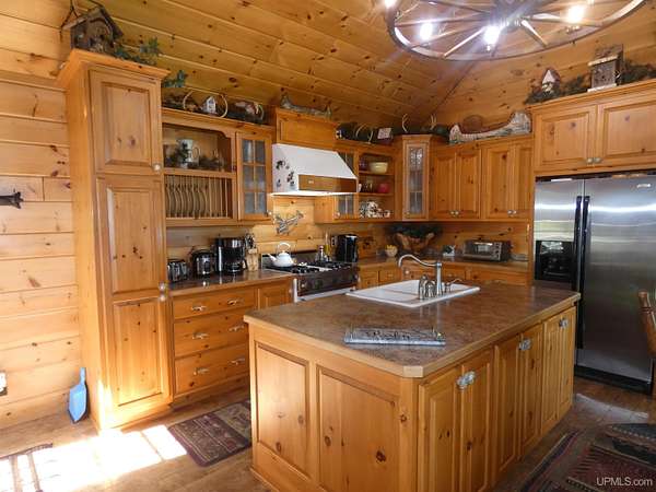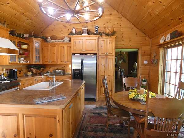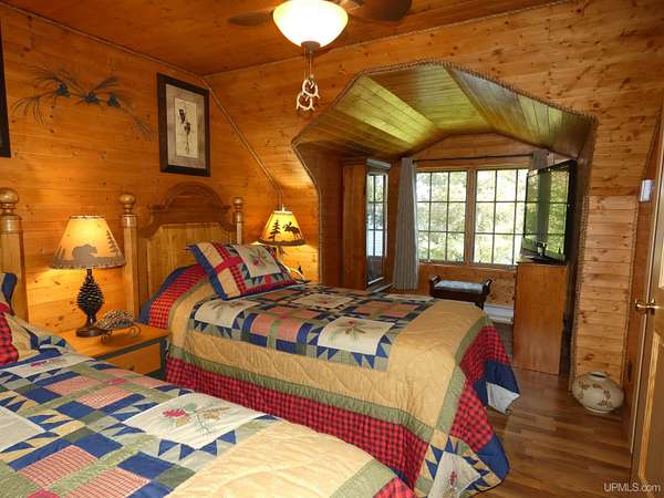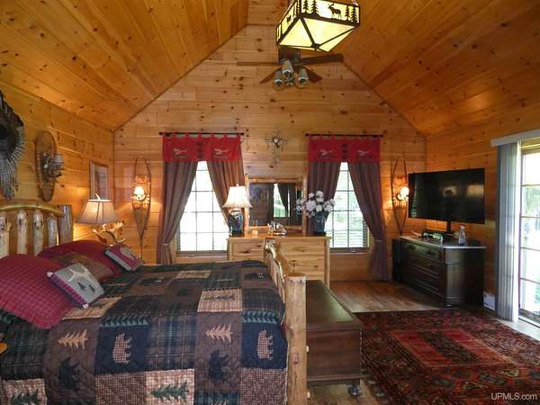 Located on the West Shore of beautiful Lake Gogebic, this stunning newly remodeled 4-bedroom 2 bath home features an open concept living room with a decorative stand-alone gas fireplace to make evening TV watching a little cozier. The beautiful kitchen area boasts of new modern upgrades including cathedral T&G ceilings, custom cupboards and additional pantry as well as patio access to the lake. The spacious master bedroom features cathedral T&G ceilings as well with a view of the lake from the personal deck accessed by private patio doors. The main floor also includes a second bedroom, laundry room, and full bath. On the upper floor you will find the 2 remaining bedrooms and full bath. The exterior is accented by rustic hewn siding, a detached 24' x 24' garage, 40' crank up peer, 40' role in pier, and 10' x 20' lake side covered deck with electricity. All these improvements are complemented by 160' of level manicured lake frontage. This property is a must see.... Call for more information, or to schedule a showing today. TAXBLE: $118,522 / SEV: $227,855