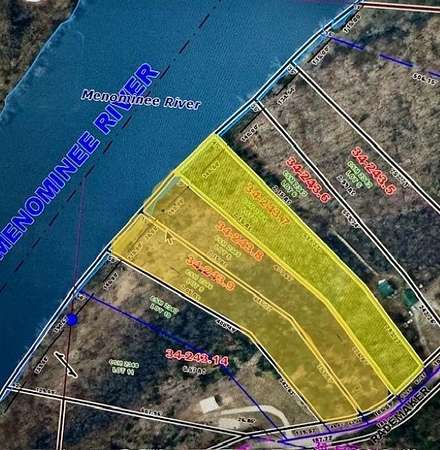 Est $891/moNestled along the picturesque bank of the Menominee River are 3 exceptional Buildable Parcels. Together a remarkable 6.36 acre awaits. With over 400 ft of waterfront, the property offers access to fishing, kayaking and breath taking views. Enjoy immediate recreational access with a U shaped driveway leading you to 2 distinct clearings for camping. The property includes lean-to firewood shed, hand pump sand point well, charming boardwalk and electricity at the road. This property is perfect for the outdoor enthusiast while offering endless possibilities for future development and building.