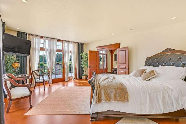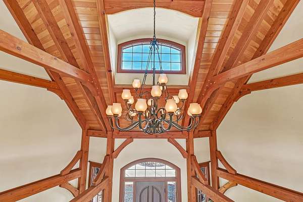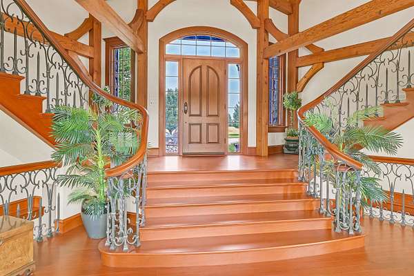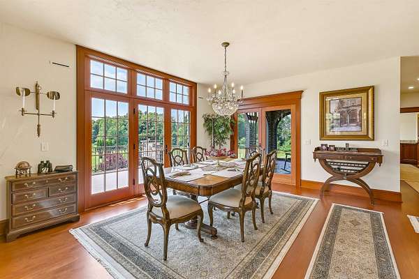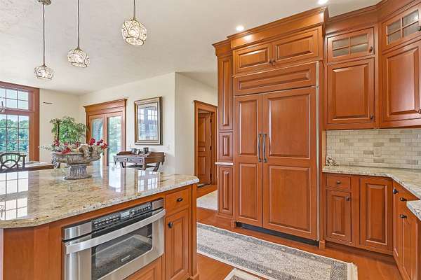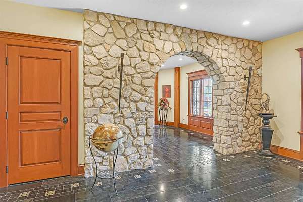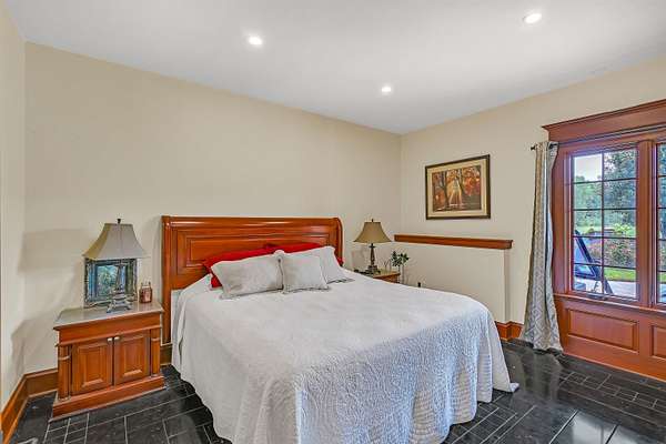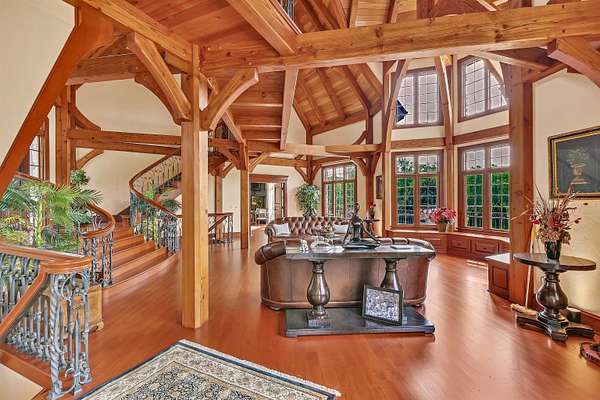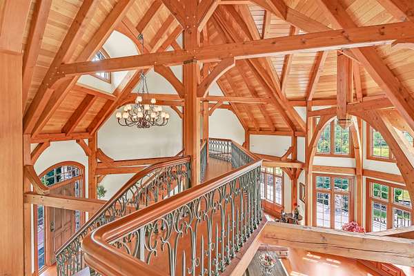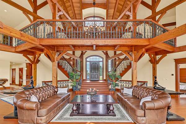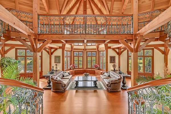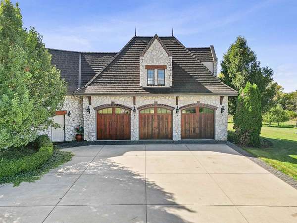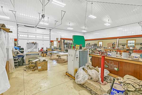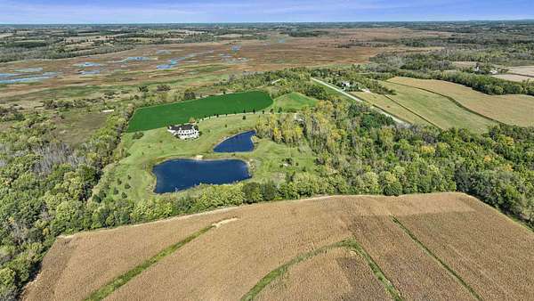 Breathtaking 52+ acre estate set in the heart of the countryside, bordered on 2 sides by DNR land. Offered for the first time, this private retreat truly has it all! Three levels showcase custom features throughout: soaring timber-frame ceiling in the great room; gourmet kitchen with granite counters, Viking stove & Sub-Zero fridge; 3-season room with sweeping countryside views; luxurious primary suite with spa-like bath and access to a large deck; lower level features a family room with FP, bar area, and walkout to the poolside patio; rich cherry and marble floors; double staircase with custom banister and ironwork; plus 3 additional bedrooms & 3.5 baths. The grounds include a gated entrance with a long private drive, 2 ponds, pool with hot tub, expansive open space, and a 50x86 heated outbuilding for hobbies and storage.