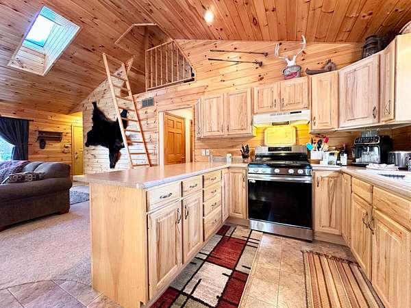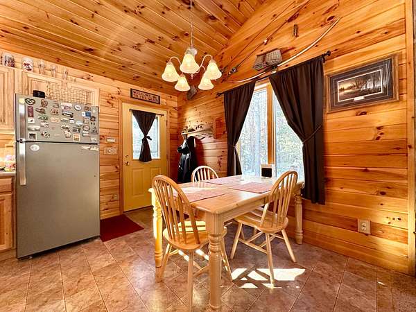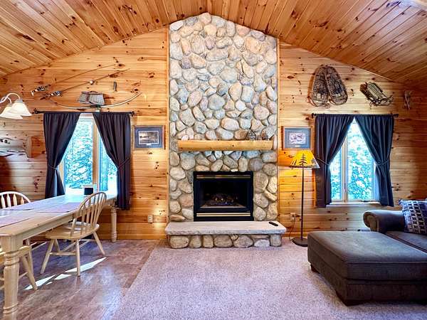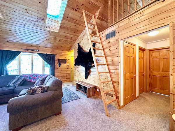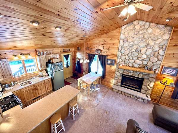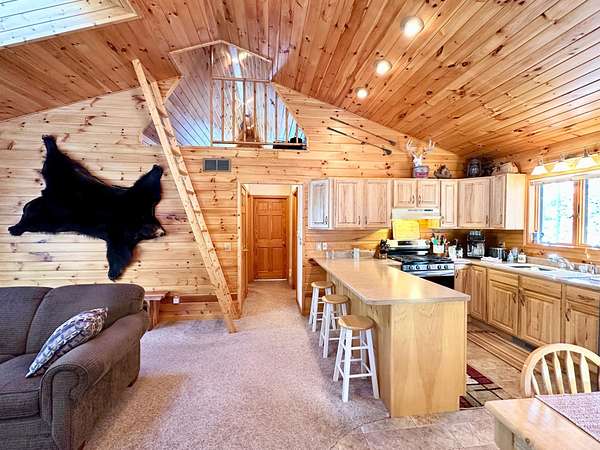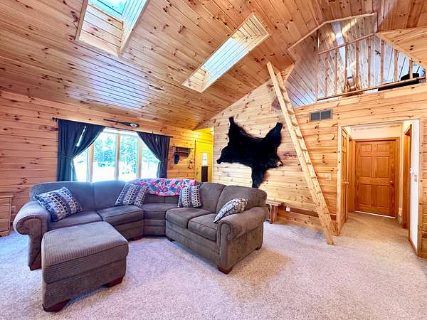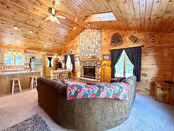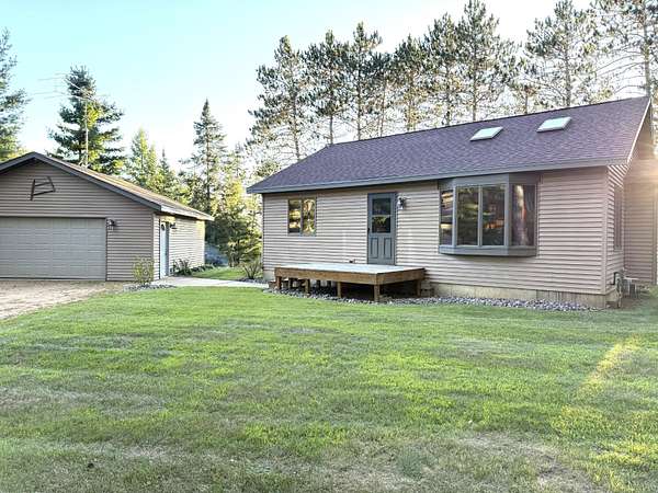 This remarkable country residence offers the ultimate retreat, featuring 2 bedrooms, 2 bathrooms, and a 2-car garage on 1.5 acres of wooded grounds with Deeded Access to Upper Post Lake. The interior presents an open-concept kitchen and living room with vaulted ceilings, expansive skylights, and a striking fieldstone fireplace. The home's layout comprises 2 main floor bedrooms, a loft, a main floor full bathroom, and a spacious lower-level family room, full bathroom, and utility/laundry room. Additional amenities include a sundeck overlooking the large backyard, complete with a firepit. Recent updates included a new roof, central air conditioning, new appliances, and a water softener. Strategically located near UTV and snowmobile trails, this property is perfect for outdoor enthusiasts. Enjoy the area's wildlife, fishing, boating, and kayaking, or unwind in the serene Northwoods peaceful surroundings. Contact us today to schedule a showing!
