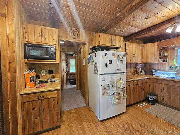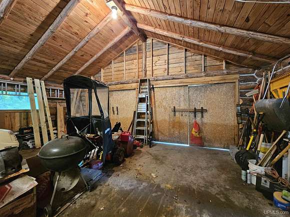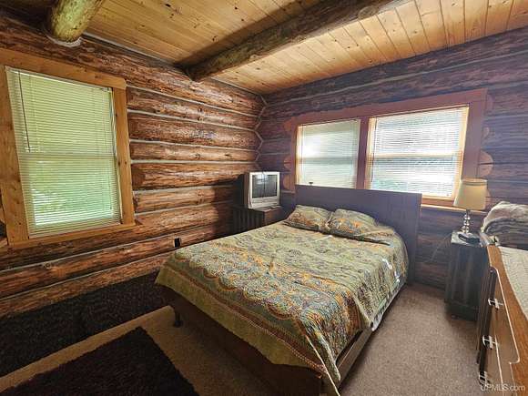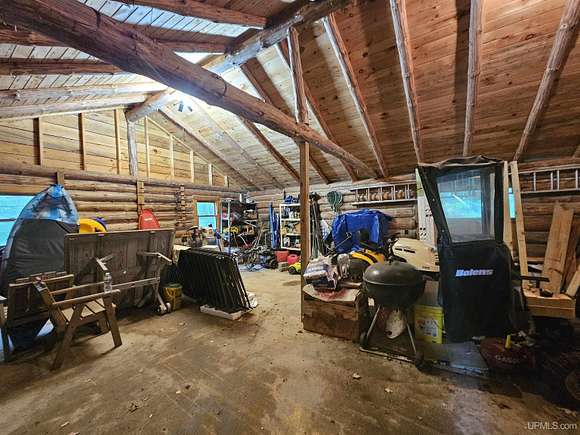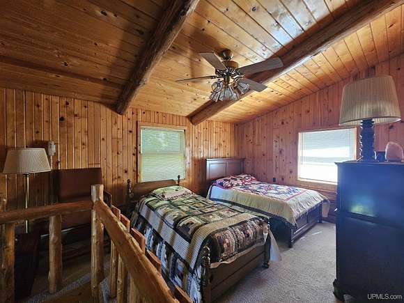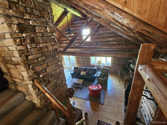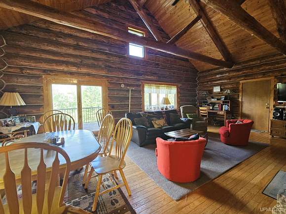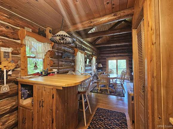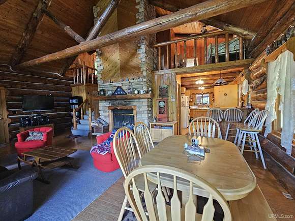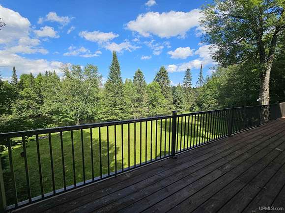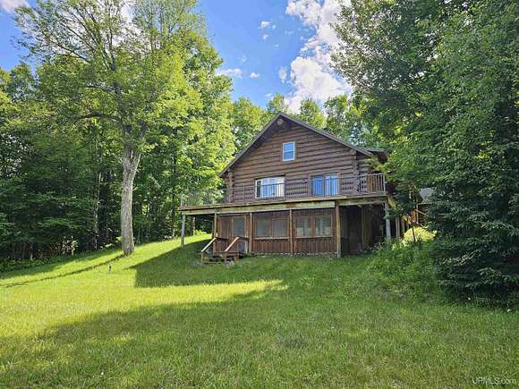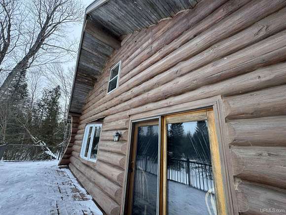 Don't miss out on this beautiful log home set on 12.7 acres on the fabulous Michigamme River. This 3 BR 1.5 bath custom log home with attached 2 car garage and walk-out finished basement comes furnished and is ready for you to enjoy riverfront living. The living room with cathedral ceilings and a towering stone fireplace definitely adds to the ambiance. Large patio doors lead to the wrap around deck overlooking the river. Upstairs there are two loft style bedrooms divided by a convenient half bath. The front walk-out side of the basement has a finished family room with a woodstove to keep things cozy and there is an attached enclosed porch towards the river. Private setting tucked off the road with a walking path that meanders along the ~285' of river frontage. Enjoy boating, swimming and fishing right out your back door!