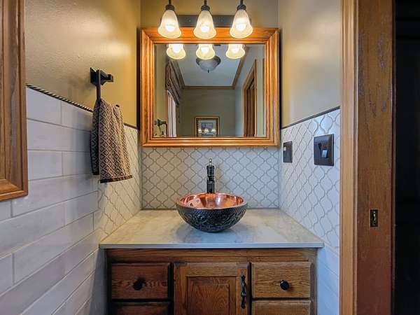 Character and charm define this custom-built 1.5-story contemporary home set on 124 ± private acres. The home offers 3 bedrooms & 2 bathrooms on the upper level, plus a den with an attached full bath in the lower level - ideal for an office or hobby space. The main level features open-concept living with a chef’s kitchen, a butler’s pantry and main-level laundry, complemented by a convenient half bath. The space flows seamlessly into the dining area and living room, where a cozy fireplace & soaring cathedral ceilings create a warm, inviting atmosphere. Rich wood accents throughout the home add timeless character & charm.