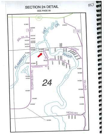 (455/PB) Woods, Water and Wildlife! It's all here! It doesn't get any better than this. Check out this 1.9+/- (2 lots) acre heavily wooded parcel with 210+/- feet of easily accessible frontage on the Southfork of the Flambeau River. Situated within the boundaries of the Chequamegon National Forest and located on Evergreen Rd approx. 7 miles east of Park Falls. Just upriver from the bridge on Sugar Bush Rd (Forest Rd 152) this parcel provides easy access to the still water above the old Sugar Bush roller dam with its roaring rapids amenity. This parcel is graced with numerous huge White Pine. Driveway to and power pedestal at the cleared camping site. Old poured concrete foundation (1,184 sq ft) and 2 BR septic system in place that was installed in 1978 that apparently was never used. 12x10 shed and non-conforming privy on site. Access to ATV and snowmobile trails. Canoers and Kayakers paradise. Take a look, you will love it! Asking $109,900.