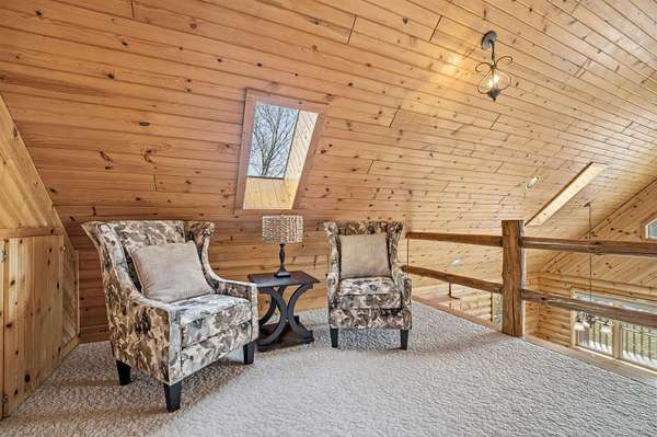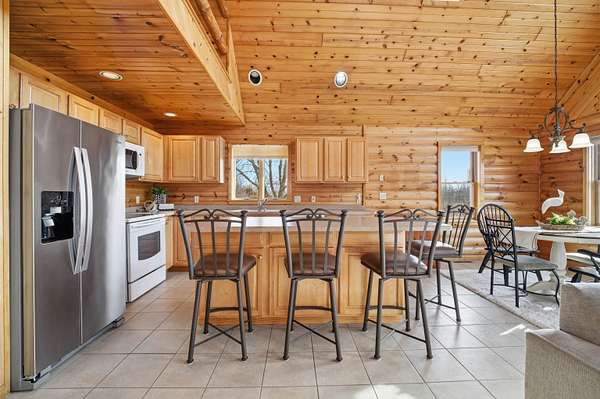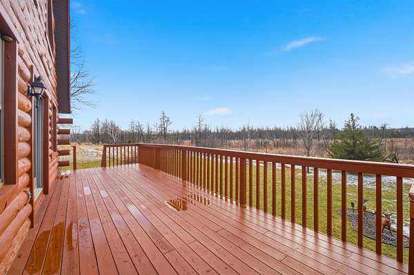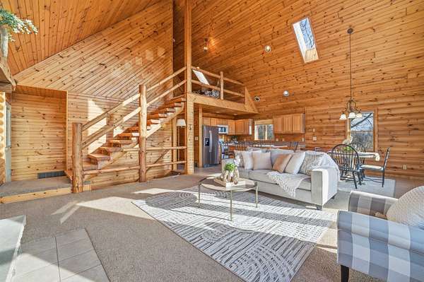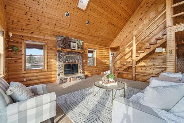 Meticulously maintained one owner log home is set upon a picturesque setting on just over 11 acres. Welcoming front porch greets you upon entry. Living room is centered around the wood burning FP, features vaulted ceilings and beautiful log staircase. Spacious kitchen boasts appliance package, island, eat-in dining area with access to the wrap around porch and amazing scenery to enjoy year round. Sizeable bedroom, full bath and convenient first floor laundry complete this level. Upstairs you will find the serene master suite with attached full bath and loft area overlooking the living room. Bring your finishing touches to the walk-out LL. Attached 3.5 car garage with additional 2.5 detached heated garage for all of your storage needs. Updates per seller include roof, furnace and more.