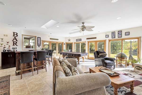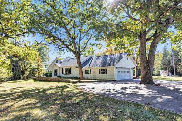Discover serenity on this picturesque 5+ acre countryside estate, where the 4-bed/2.5 bath executive-style residence seamlessly combines luxury, peace, and a prime location for outdoor recreation, gardening, or simply soaking in the sounds of nature. This spacious, sunlit, renovated home boasts stunning views of Deer Lake, with every lakeside room offering a breathtaking panorama. Host gatherings beneath the stars on the expansive custom masonry patios, or relish the cozy atmosphere created by the wood and gas fireplaces as snowflakes gently fall. Jetted-tub, steam shower, Corian, marble and stone surfaces are just some of the high-end details you'll find. *Survey in process to take pole shed fully off this property. Taxes/acreage will be adjusted down accordingly.