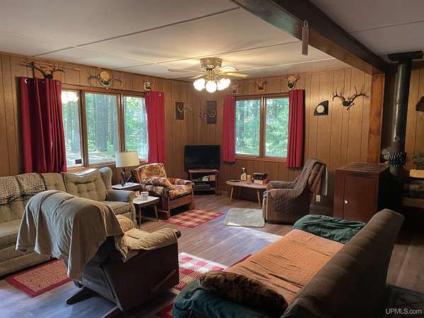 2BR Cottage with Trail Access on Private Wooded Lot - Great Outdoor Getaway. This charming 2br cottage is perfectly situated on a private, wooded lot--ideal for a rustic year-round retreat. Direct access to ATV and snowmobile trails, and is located near thousands of acres of public County land, great for hunting, hiking, and exploring. Inside, the cabin has been well maintained and includes a drilled well with running water to the kitchen and bathroom. A composting toilet is located in the half bath and garage, as there is no septic system in place. Stay cozy all winter with the wood-burning stove that provides reliable heat. A 28'x16' one-car garage with its own wood stove, toilet and clawfoot bathtub, offers plenty of storage for gear and toys or could serve as a workshop. Whether you're looking for a quiet nature escape or a basecamp for year-round adventure, this cottage has all the essentials.