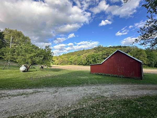 Love the sound of birds & tractors in the distance?This is a Rare Country Find Seven Mile Creek Township property! Just minutes from Mauston, this 4BR, 2.5 BA home sits on over 10 acres w/ stunning southern views of the Seven Mile Creek valley. Features classic red shed, vintage barn, 2-car garage w/ garage door-12' tall x 16' wide, & old silo offer classic country charm. Fruit trees, towering weeping willows, rock outcroppings, & mature hardwoods provide both privacy & seasonal beauty. A touch of tillable land is perfect for a garden or hobby farm.1st floor laundry & sellers have done a nice job updating flooring - painting interior & updating main bath & NEW WELL & SEPTIC IN 2025.This has real hobby farm potential & it's on the edge of the Driftless Region--this is rural living at its BES