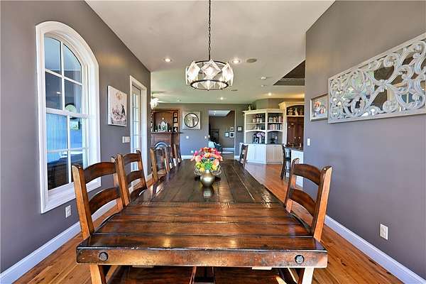 Located on 40 acres of picturesque countryside, this open, free-flowing 5-BR, 3.5-BA home offers over 7,000 sq. ft. of beautifully finished living space. Inside, you'll find a chef's kitchen with a walk-in pantry, formal dining room, breakfast nook, cozy sitting area, & a 3-season sunroom with stunning sunset views. The spacious living room features a wood stove for a warm, inviting atmosphere. The owner's suite includes a luxurious tile shower & two walk-in closets. Upstairs offers even more space with a large family room, fun theatre room, 4 additional bedrooms, & 2 full baths. An attached heated 3-car garage, 48'x80' pole building, 30'x40' workshop, & multiple sheds-offer plenty of storage for equipment/hobbies. The covered front porch is perfect for relaxing while taking in peaceful country views. Ideal for a hobby farm, the property includes fenced pasture, horse stalls, and a chicken coop. Conveniently located near Shell Lake and other nearby lakes with sandy beaches, plus snowmobile and ATV trails.