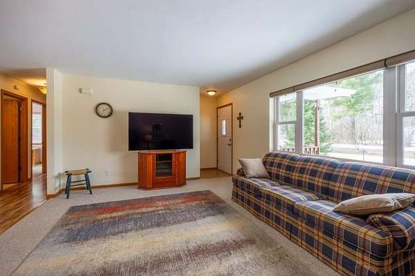 Beautiful 3-bedroom, 2 Full Bathroom Ranch home set on a 1.5 Acre lot. Home features split bedroom design and has a newly finished mudroom; adding a wonderful space when you enter from the garage: with tons of storage and a patio door to patio (natural gas grill is included!). From the mudroom enter into the MAIN floor laundry area, conveniently located near the primary bedroom and kitchen. The primary bedroom is large enough to accommodate a King-size bedroom set with room leftover, has a good-sized walk-in closet and a full bath attached. Spacious living room area, that leads out to a large covered front porch. A great spot to spend the evenings in this quiet setting. Well laid out kitchen with a unique corner counter, great for entertaining! Dining area is larger than average and has a bump out window adding elegance to the room. Full Basement has a woodstove, 3 daylight windows and is an open canvas for you to make your own. Nice big 2-car attached garage, that’s insulated and finished off! Outside you’ll find a usable flat yard that’s private and has a separate driveway for the 24 x 36 outbuilding. Seller has ran electricity to it and insulated the whole building. There is a heated (woodstove) work shop in a portion of the outbuilding. Siding and Roof on home new in 2024. This home truly has it all! Spring into action today to call for your personal showing!