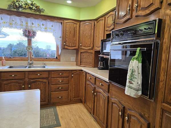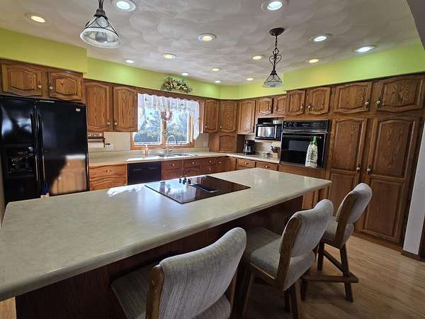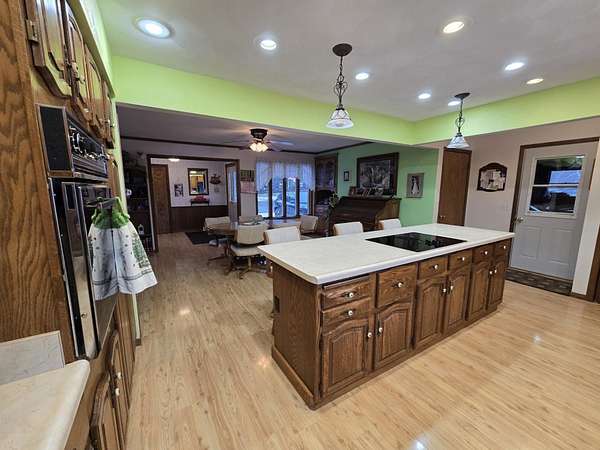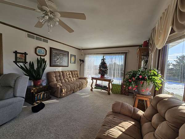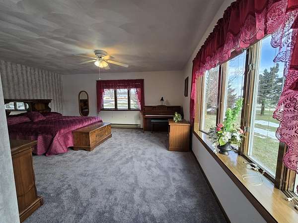 Situated on 2.59 picturesque acres, this exceptional home includes a large great room brimming with natural sunlight, 4 bedrooms, main floor laundry, beautiful views, sunny kitchen with a large island, and a large finished rec room with a walk-out in the lower level! The detached 48 X 30 garage has room for all your grown-up toys and is perfect for the person who likes to tinker around in the shop or just appreciates extra storage space. You can enjoy barbecuing & entertaining on the large deck or just kick back, relax & watch the sunset! There is ample green space for outdoor activities and fun. Many lovely perennials and asparagus have been planted on the property. Much of the carpet was replaced within the last year. Home offers country vibes, but has easy access to Hwy 11, is located l