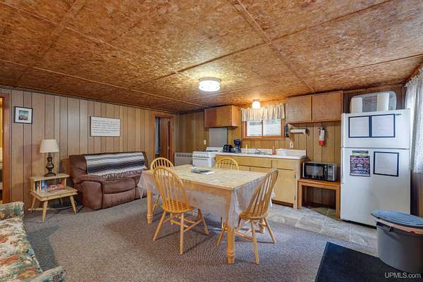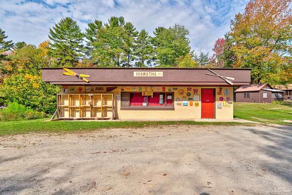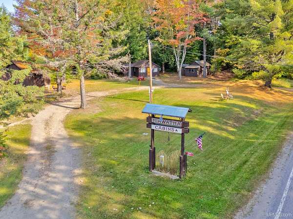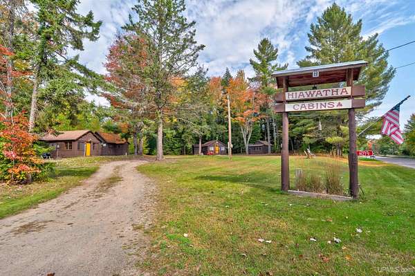 Come to disconnect... to reconnect. Nestled in the heart of Michigan's Hiawatha National Forest, Hiawatha Cabins offers a peaceful escape surrounded by towering trees, fresh air, and endless outdoor adventure. Situated on over 2 acres with frontage on Blue Lake, this charming property provides a beautiful natural setting ideal for quiet reflection. This turnkey operation includes five fully equipped cabins--four year-round and one seasonal--plus an additional tiny cabin ready for renovation. Each is furnished and stocked with appliances & kitchen essentials, allowing you to step right in and start hosting guests or enjoying your own private retreat. With clean, comfortable, and affordable accommodations, Hiawatha Cabins welcomes guests with full kitchens, bathrooms, Wi-Fi, and smart TVs for streaming. Bonfire pits and dark night skies invite quiet evenings under the stars and glimpses of the Northern Lights. Combining a rustic feel with modern comforts, every cabin has seen thoughtful updates since 2020, including new flooring, paint, radiant heaters, upgraded appliances, and decor. Property-wide improvements include buried electric, new electric panels, fiber optic internet, and a 120-gallon pressure tank (2023). The Hemlock Cabin features a new metal roof (2022), and several cabins include screened porches, new plumbing, and heating enhancements. Additional outbuildings include a garage, pump house, and a block building with seasonal laundry--ideal for storage, an office, or future rental conversion. Located south of Munising on Forest Highway 13 in the quiet community of Midway, this area is a year-round outdoor playground, conveniently positioned halfway between Lakes Superior and Michigan. Ride directly from your cabin to Snowmobile Trail 7, just a 1/4 mile away, or explore nearby hiking and biking trails, lakes, streams, and scenic landmarks like Pictured Rocks, Grand Island, Kitch-iti-Kipi, Fayette, Garden, and Stonington. Guests love the proximity to Midway General Store next door for ice cream, gas, food, supplies, and occasional outdoor entertainment in summer. Whether you're looking for an established income property, a family compound, or a personal escape from the noise of everyday life--Hiawatha Cabins invites you to disconnect from the world, and reconnect with what matters most.