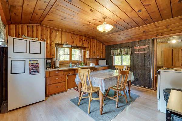 This 2.12-acre property is located at N279 FF Highway 13 in Wetmore, MI 49895. The property is pending sale. It has a 2,893 sq ft 9 bedroom, 5 bath house built in 1960.