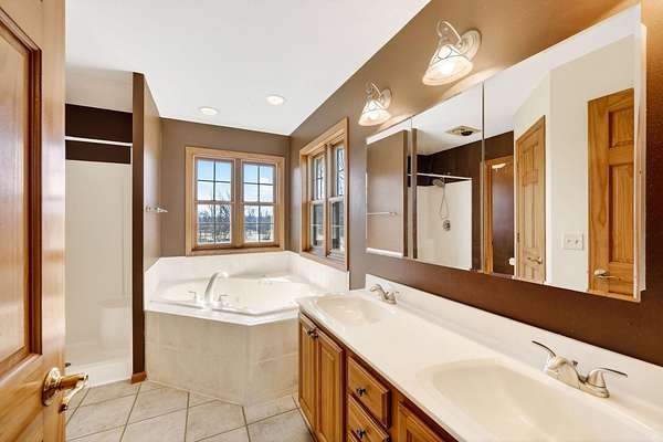 - At Least 1 Tub, Great Room, Jetted Bathtub, Vaulted Ceiling, Walk-In Closet(s), Water Softener Inc, Wood or Sim. Wood Floor