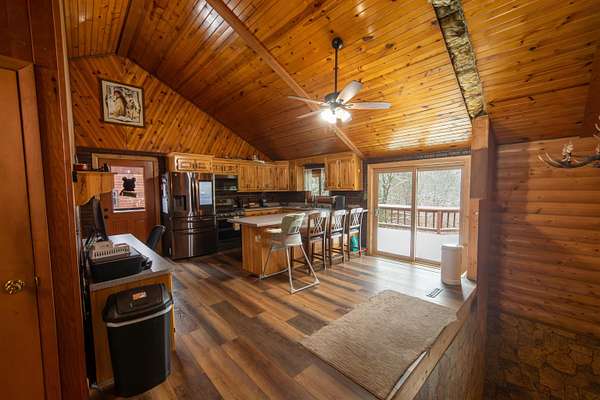 Est $2,181/mo3BR/2BA log home on 7.3 acres near Pleasant Lake. Warm and welcoming with an open layout, updated hickory cabinets, finished walkout basement and a spacious deck perfect for relaxing or entertaining. Enjoy beautiful views of Chaffee Creek from your living room and easy access to over 300 acres of DNR land. Includes 2+ car detached garage, a 10x22 shed and an outdoor wood burning stove. Enjoy this peaceful hideaway that offers the ideal blend of privacy, convenience, and country charm.