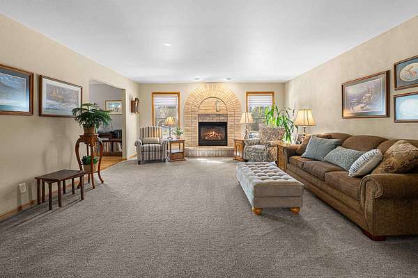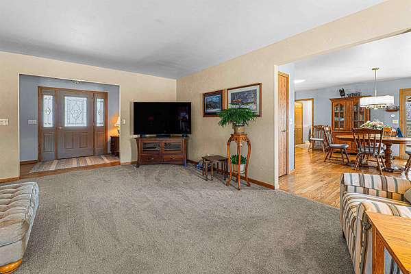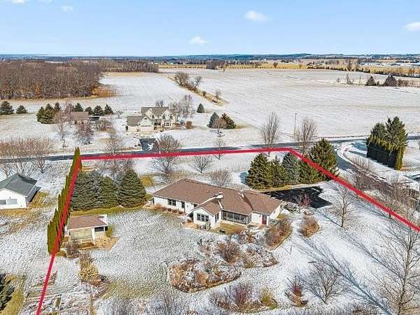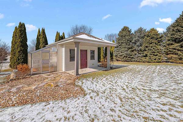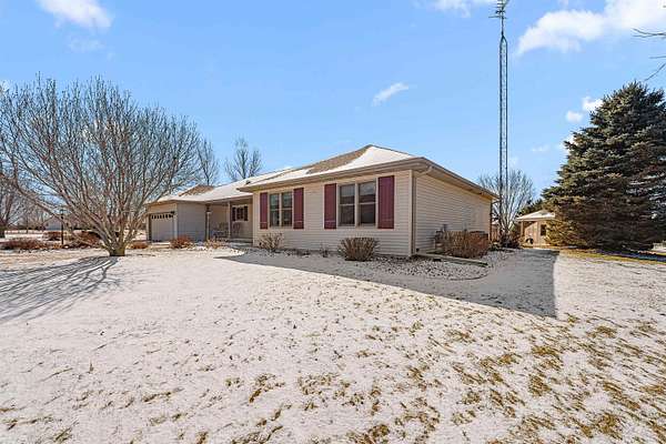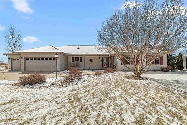 Step into this beautiful 3-bedroom, 2.5-bath ranch located less than 10 minutes from Fond du Lac. Enjoy a spacious kitchen with ample storage, a stunning four-seasons room filled with natural light, and a large living room featuring a cozy gas fireplace. The primary suite offers a private en suite bathroom for your comfort and convenience. The finished lower level provides additional living space, including a versatile office or potential fourth bedroom.Outside, you'll find an impressive 1.58 acre lot full of mature trees-offering beauty and privacy, plus torage shed with attached greenhouse. All windows, and major items have been updated. Please give until Monday, March 2nd for binding acceptance.