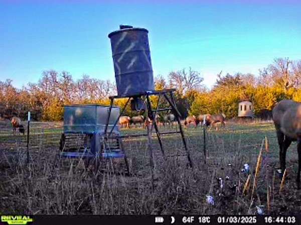 Wildlife: Free range North American Elk. White tail deer. Rio Grande turkey. Feral hogs. Coyotes. Bobcats.