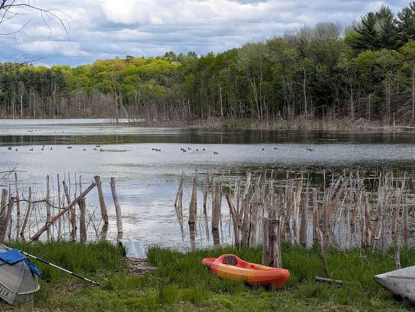 A rare opportunity to own a turn-key recreational paradise, dream cabin site, or permanent home location on a private 21-acre lake in the Township of Deerfield. With no public access and only five other homes on the lake, this property ensures ultimate privacy and a complete wilderness feel. The 4.04-acre lot features mature white and red oak and pine woodlands, and extensive high-end improvements. Adjacent to 13.5 combined acres of vacant undeveloped woodland and agricultural land, it offers total seclusion and abundant wildlife.350 Feet of Private Shoreline meticulously cleared of invasive brush, leaving beautiful white and red pine, aspen, and red and white oak trees while totally opening up the lake views. Includes a stunning south-facing peninsula, gorgeous sunrises over the lake and the perfect "hangout" spot with all-day sun. Included in sale (as-is): Vintage Jayco Bunkhouse with heat, A/C, Stove, and Refrigerator, Fishing Boat with trolling motor and Electric Mower.