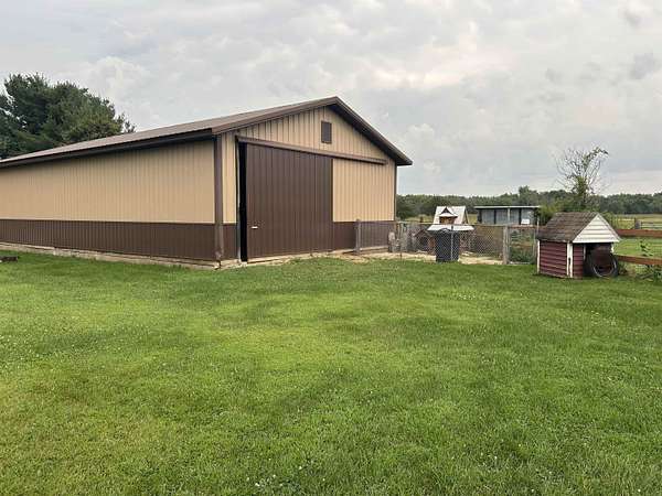 Est $1,590/moThe farmlet property features several buildings--the property is fully fenced. There are two houses on the property, along with a storage building and a 30x60 pole barn. The main house is 3 bedrooms/1 bathroom, and another 1 bedroom/1 bathroom, with a full kitchen and laundry room. The property has a large barn, a brick-built smoker, an Orchard, and a garden. Heating and Cooling were upgraded 6 years ago. Metal roof and shingle roof, 7years old. LP tank rented
