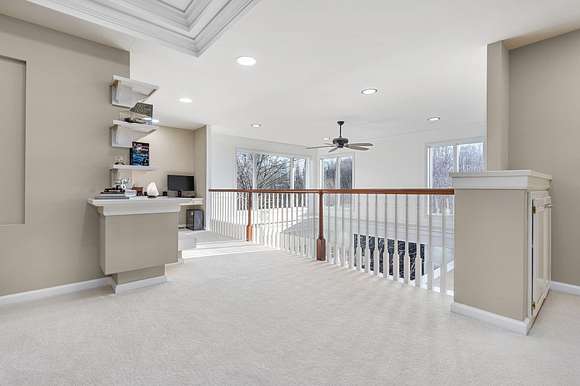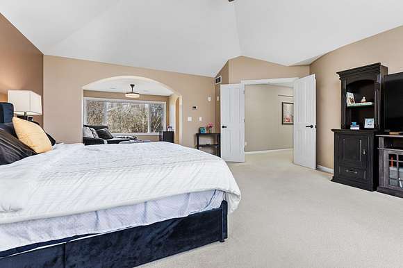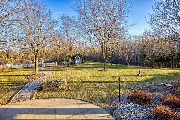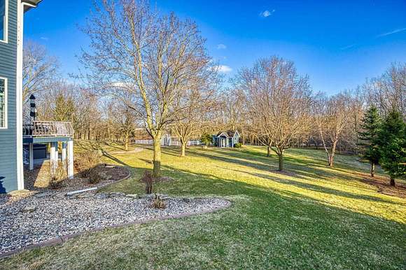 This impeccably remodeled two-story residence offers 4 beds, 3.1 baths, and 3-car garage, all set on 3.03 nature-filled acres. Grand foyer with curved staircase leads to the soaring great room, featuring a tile wall and custom entertainment center. The gourmet kitchen with stunning waterfall island is sure to steal your heart. The primary suite is true luxury w/ a vaulted ceiling, private living area, walk-in closet, and soaking tub. Walk-out basement finished with a wet bar and additional fireplace. With breathtaking views from every window, a brick front exterior, formal dining room, an office, and many bonus spaces, this home is truly exceptional in the Town of Freedom. Don't forget to step out onto the deck or concrete patio and take the path to the garden, bonus shed, & creek!