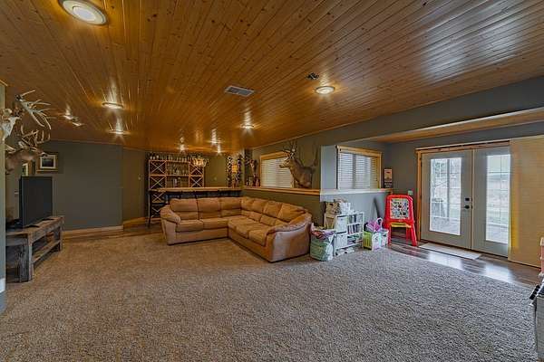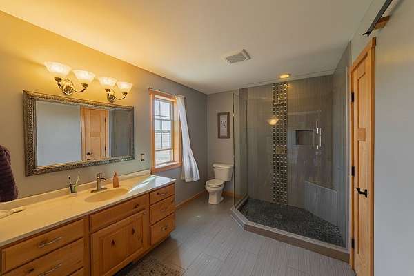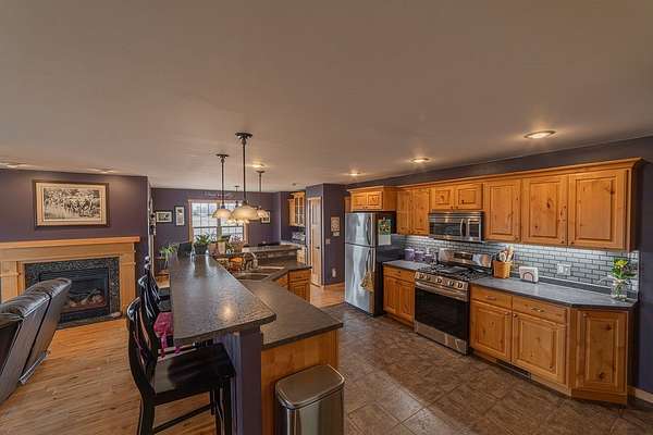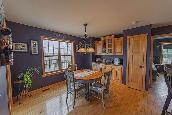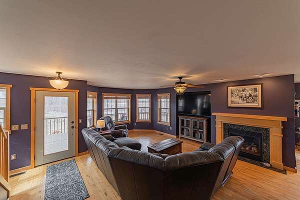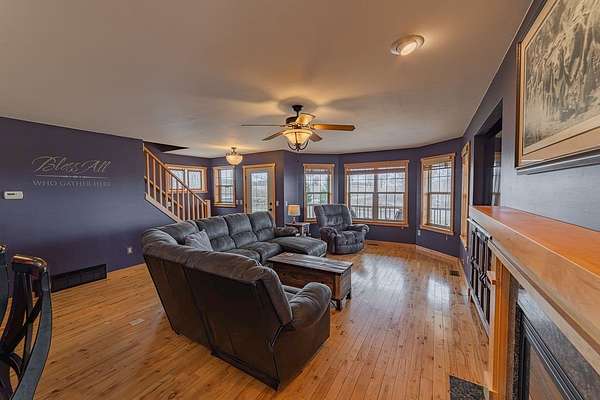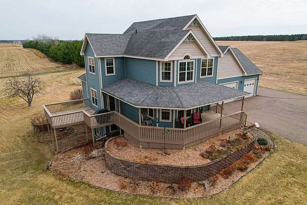 Escape to the countryside and experience the ultimate lifestyle upgrade in this modern sanctuary set on 10+ acres of beautiful pines and rolling farmland, located just 20 minutes from Eau Claire. This custom-built estate seamlessly blends rural privacy with sophisticated design, featuring an airy main-level layout highlighted by a masterful suite with a custom tile shower, a moody living area with a gas fireplace, and the convenience of main-floor laundry. The home is built for entertaining, boasting finished lower level spaces with a dedicated family room and full bar, while the expansive covered wood deck offers panoramic countryside views. Complete with an oversized three-vehicle garage and a sustainable central wood boiler, this property provides a rare opportunity for peaceful, self-sufficient living without sacrificing urban connections.