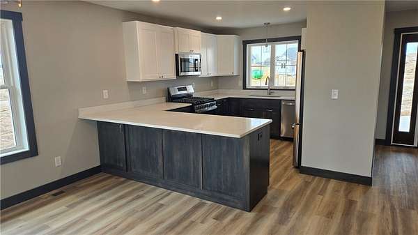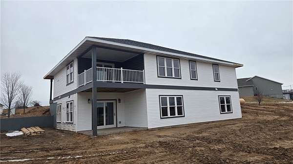 Welcome to this brand-new build in Elk Mound in the popular Eagle Crest subdivision, where modern design meets comfort and functionality on 1.5 acres of beautiful space. This thoughtfully designed home features 4 bedrooms and 3 bathrooms, a welcoming front porch, covered decks on both levels-perfect for relaxing or entertaining. Inside, you'll love the functional floor plan filled with natural light, great storage areas, and finished with luxury vinyl plank flooring throughout. The kitchen shines with quartz countertops, offering a large walk-in pantry, and flows seamlessly into the main living area. A spacious main floor laundry room adds everyday convenience. The finished basement offers two additional bedrooms and a large family room, providing plenty of space to spread out. Each bedroom offers large closets and a charming master bath provides a unique touch that you'll love to come home to. Come and see this beautiful home for yourself-you won't want to miss it! One year builders warranty included.