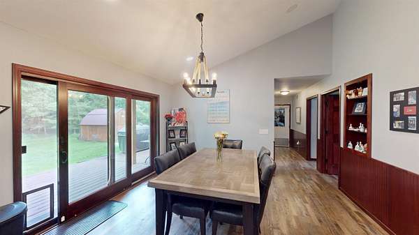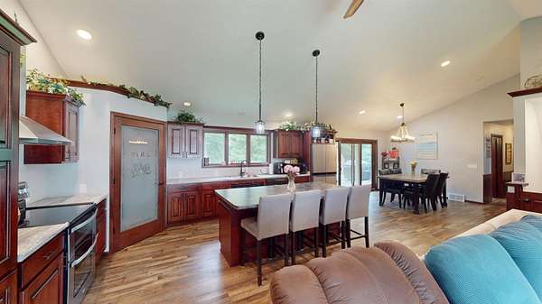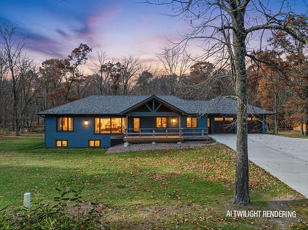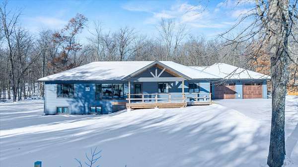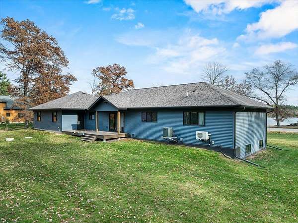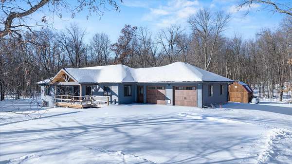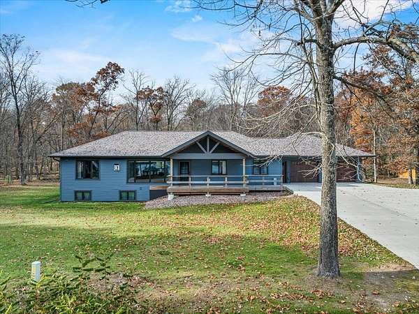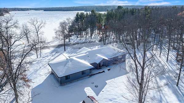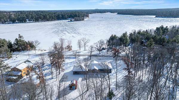 Discover tranquility and luxury in this exquisite 4-year-old waterfront home nestled on 3.3 acres on Lake Arbutus in Central Wisconsin. Enjoy the seamless blend of modern design and natural beauty with endless waterfront views from every room on the main floor. This home is fully handicapped accessible and a voice-equipped Smart Home. Step into elegance with vaulted ceilings enhancing the spacious open-concept living areas. The custom kitchen features a new refrigerator, stainless steel appliances, walk- in pantry and a large island with seating, perfect for casual meals or entertainment. The dining area opens to a maintenance-free deck offering privacy with woodland views; making it perfect for entertaining or relaxing. A cozy gas fireplace anchors the main living space, creating a warm and inviting atmosphere. Unwind in the primary bedroom suite boasting a massive walk-in closet and en-suite bath with roll-in shower and a relaxing 2-person tub. The main floor also features a bedroom with French doors with easy access to both the main entrance and garage entry door.