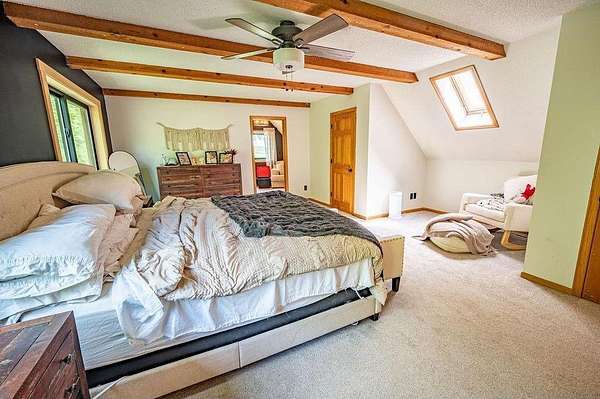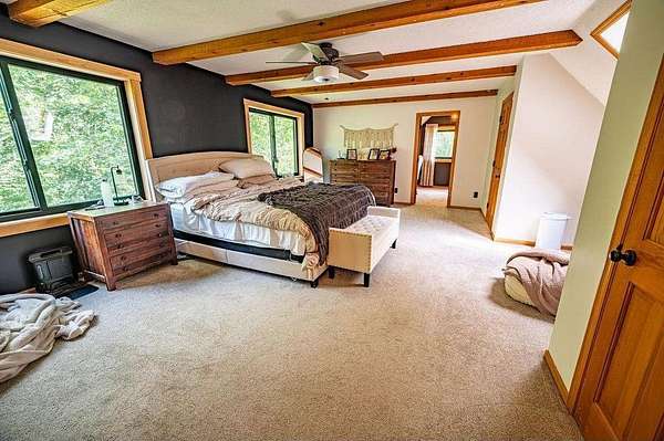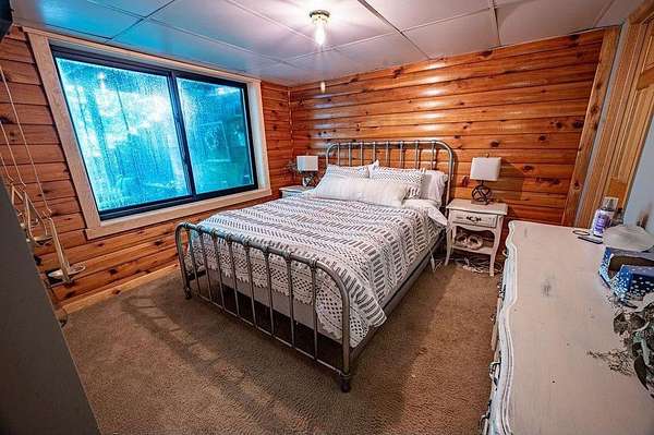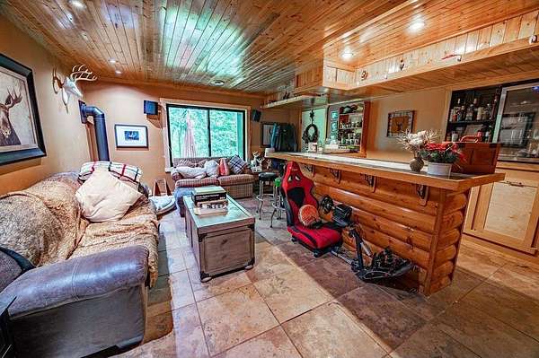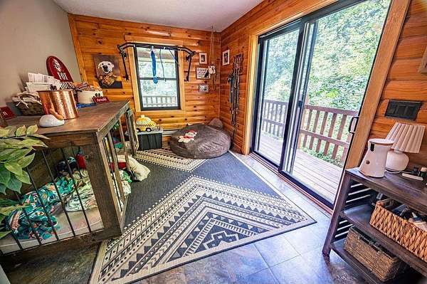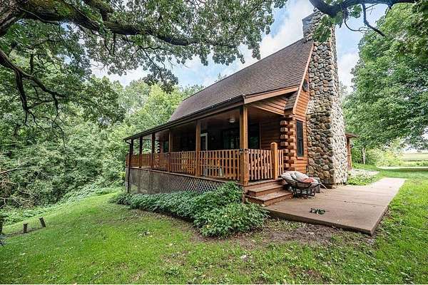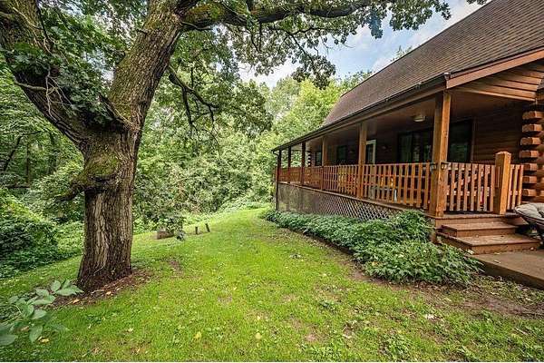 Privacy at its Finest!!! Beautiful Log Home in Wooded area! Welcoming Interior is highlighted by Vaulted Wood Ceiling, Floor-to-Ceiling Stone Fireplace & Hardwood Flooring throughout Home! Upper Level features generous-sized Bedroom, Office, Full Bath & Loft area. Escape to the Lower Level Family Room w/Bar area & Gas Fireplace. Relax in the Sun Room, on the Back Deck, the Covered Porch or Lower Patio! Many recent updates, Lower Patio & Landscape in 2019; New Windows, Furnace, A/C & Gas FP in 2021; Freshly Stained Exterior in 2022; Front Landscape in 2025. Underground Fencing also installed w/2 dog collars for keeping your pets close by. Peaceful setting; located close to Twin Cities Metro!!