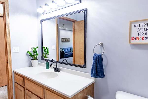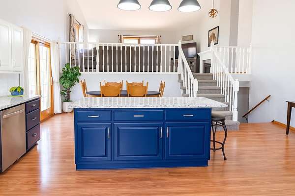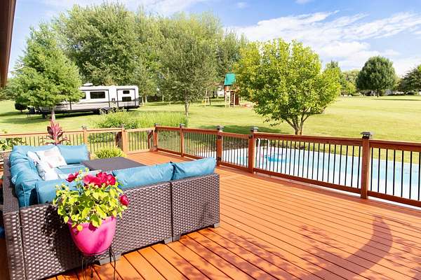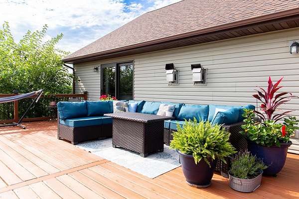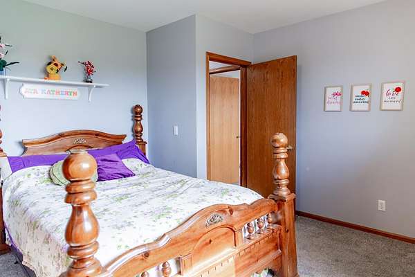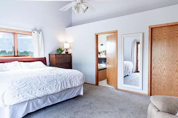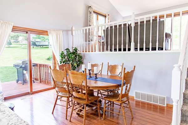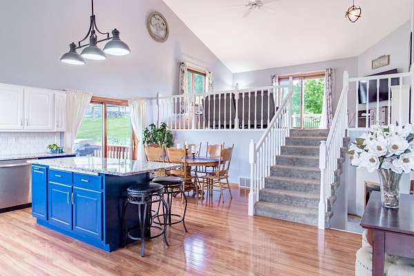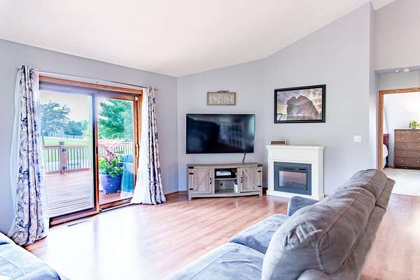 Experience the grandeur of this modified split-level home, where privacy meets convenience! Located just .5 miles from scenic trails and minutes from Hwy 69 and Monroe, this home offers vaulted ceilings, abundant natural light, and a grand master suite with jetted tub, ceramic tile, separate shower, walk-in closet, and private walkout to a massive 16'x32' gated deck (new in 2022). Enjoy a newly updated kitchen with granite countertops, large island, and Samsung stainless appliances (2022). Split-bedroom layout, covered front porch, spacious 2-car garage, shed, and invisible pet fence surrounding the property. Set on a quiet cul-de-sac with stunning views. Septic replaced in 2022, Furnace, AC and Water Heater in 2016. Welcome home!