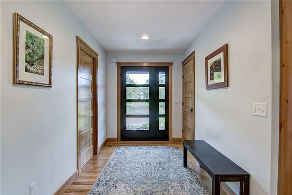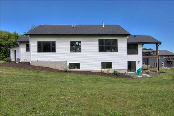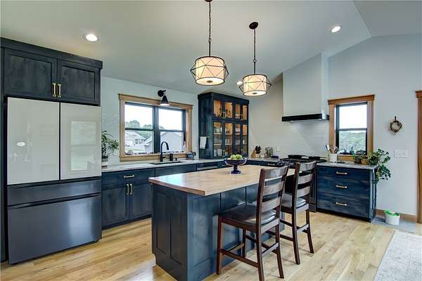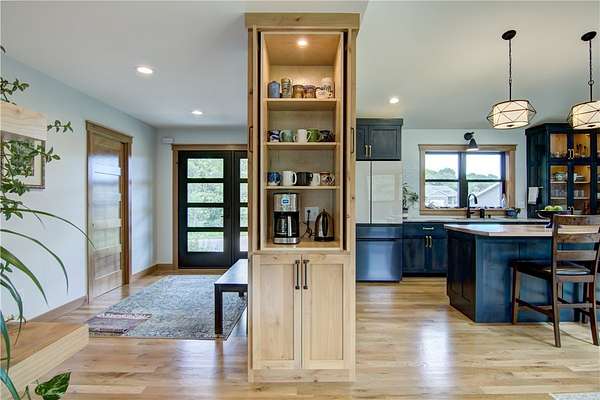 Beautiful custom (3) bedroom / (3) bath newer construction home located in one of Menomonie's newest developments Timber Valley in SE Menomonie just outside of city limits! Situated on a private 1.82 acre lot, you will love many upgraded features such as the gorgeous solid white oak floors on the main level, neat butcher block island, fun built in coffee bar & beautiful quartz counters in the KT, custom knotty alder cabinetry, wonderful covered patio, nice flagstone patio in the walk out LL area & meticulously landscaped grounds! Very thoughtfully planned floor plan w/convenient locker area in back entry, great main level office for your home office needs, beautiful primary suite, convenient main level laundry, and insulated oversized 2.5 car garage w/extra side parking pad. Lower level adds a huge family room, 3rd bedroom, full bath, another egress window if a 4th bedroom is desired in the future and loads of storage! Property is meticulous and move in ready! Fast close possible!