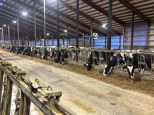 Exceptional working dairy farm in Waupaca County, set up for approximately 500 milking cows and 500 young stock. Included are approx 51 acres, with additional land available for rent. The property offers free-stall barns, a DeLaval Double-8 Parallel Parlor, loafing sheds, and a full line of equipment needed to operate the dairy (feed, cattle, and young stock sold separately). Most of the buildings were built in 2014. The well-kept 4-bedroom/2-bath home features an updated kitchen with island, formal dining room, beautiful sunroom with gas fireplace, bedroom, full bath, spacious foyer, and laundry on the main level. The upper level provides a primary bedroom with an attached full bath and a 9x8 bonus room, plus two more bedrooms.