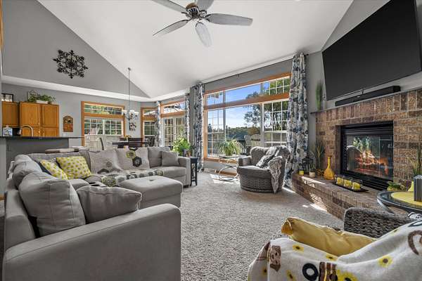Escape to your own 3+ wooded sanctuary w/direct access to a private lake. Sunlight streams through floor-to-ceiling windows & vaulted ceiling skylights, highlighting hardwood floors. The kitchen blends style and function with a breakfast bar, abundant cabinetry, pull-out shelving, pantry, and seamless flow to formal and casual dining areas. The main floor primary suite offers a true escape and has a spacious WIC. Upstairs, 2 large bedrooms each feature walk-ins plus a versatile office/den area w/built-ins. The finished LL w/9-ft ceilings provides future bedroom potential, a bath, workshop, and generous storage. Unwind outside on the cedar deck w/gazebo, stone paths, and wraparound drive. A perfect place to relax, entertain, or take a quiet walk down to the lake. A rare opportunity awaits!