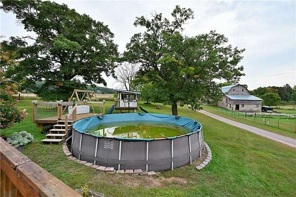 Est $3,579/moThis unique home is definitely a must see!! This home features a unique design and layout. Has high ceilings and large windows to help create a very spacious and bright feeling to this home. With the bonus loft at the very top of the home to the fully finished in-law suite on the lower level there is plenty of space for the entertaining. The wrap around deck offers plenty of views to sit and enjoy. This property offers many options, you can use the property as a working farm, hobby farm or just as your family home. Don't miss out on this home!